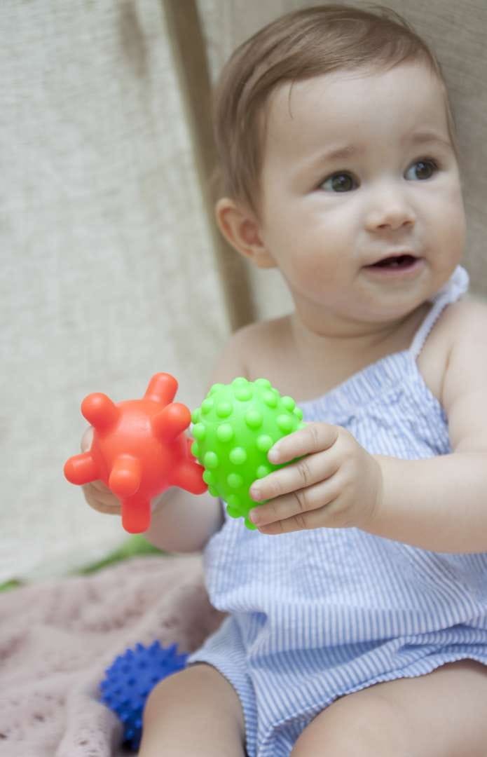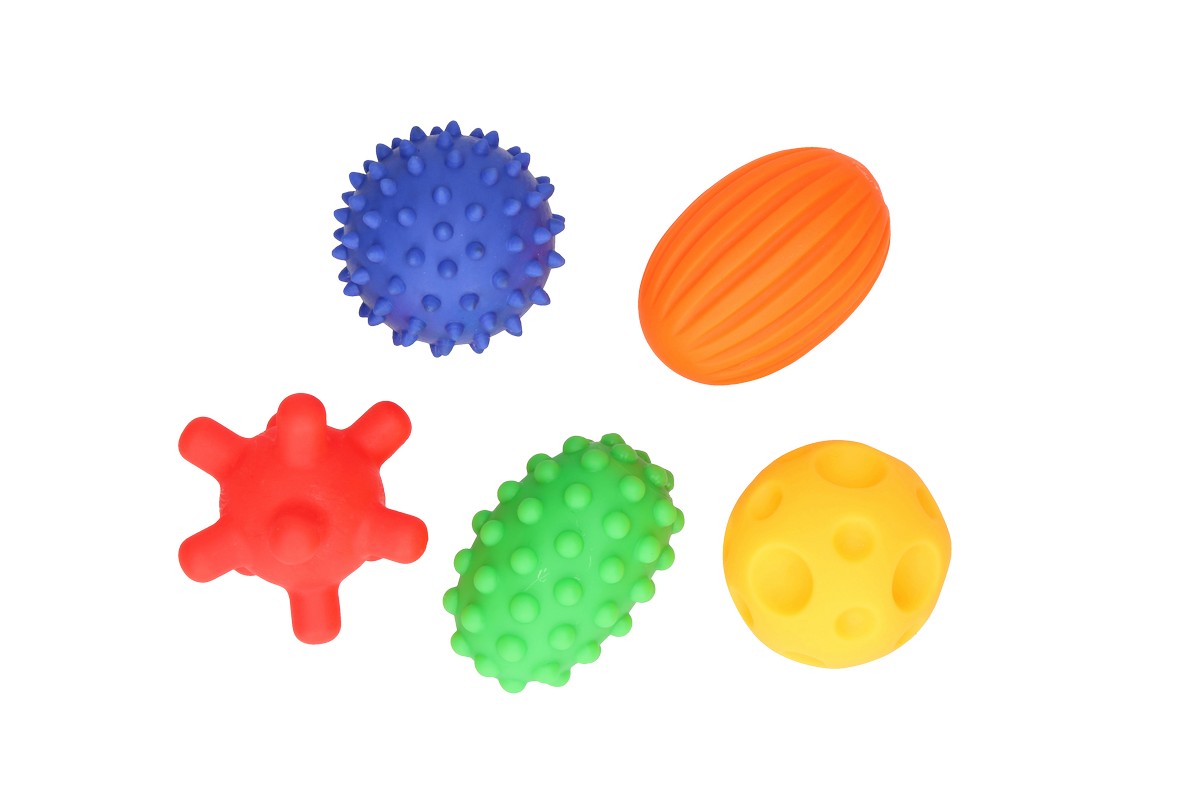 Sada obsahuje 5 senzorických míčků různých velikostí a textur