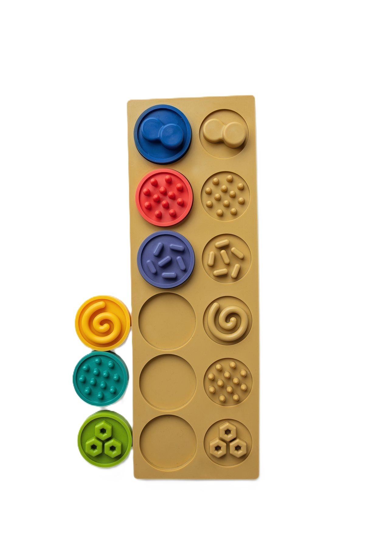 Sada obsahuje senzorickou podložku a 6 kruhů s různými texturami