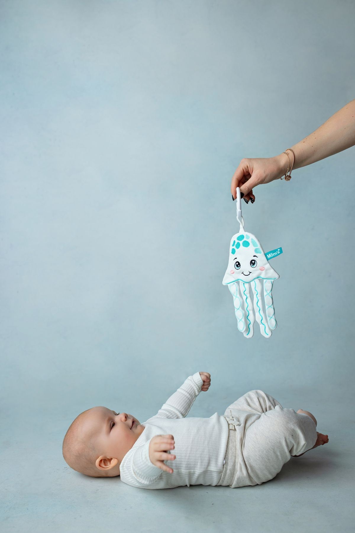 Praktická smyčka umožňuje zavěšení na postýlku, kočárek nebo autosedačku
