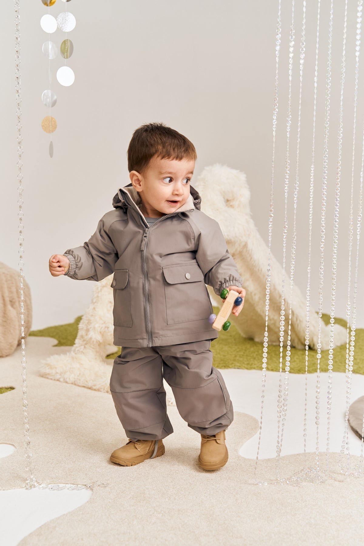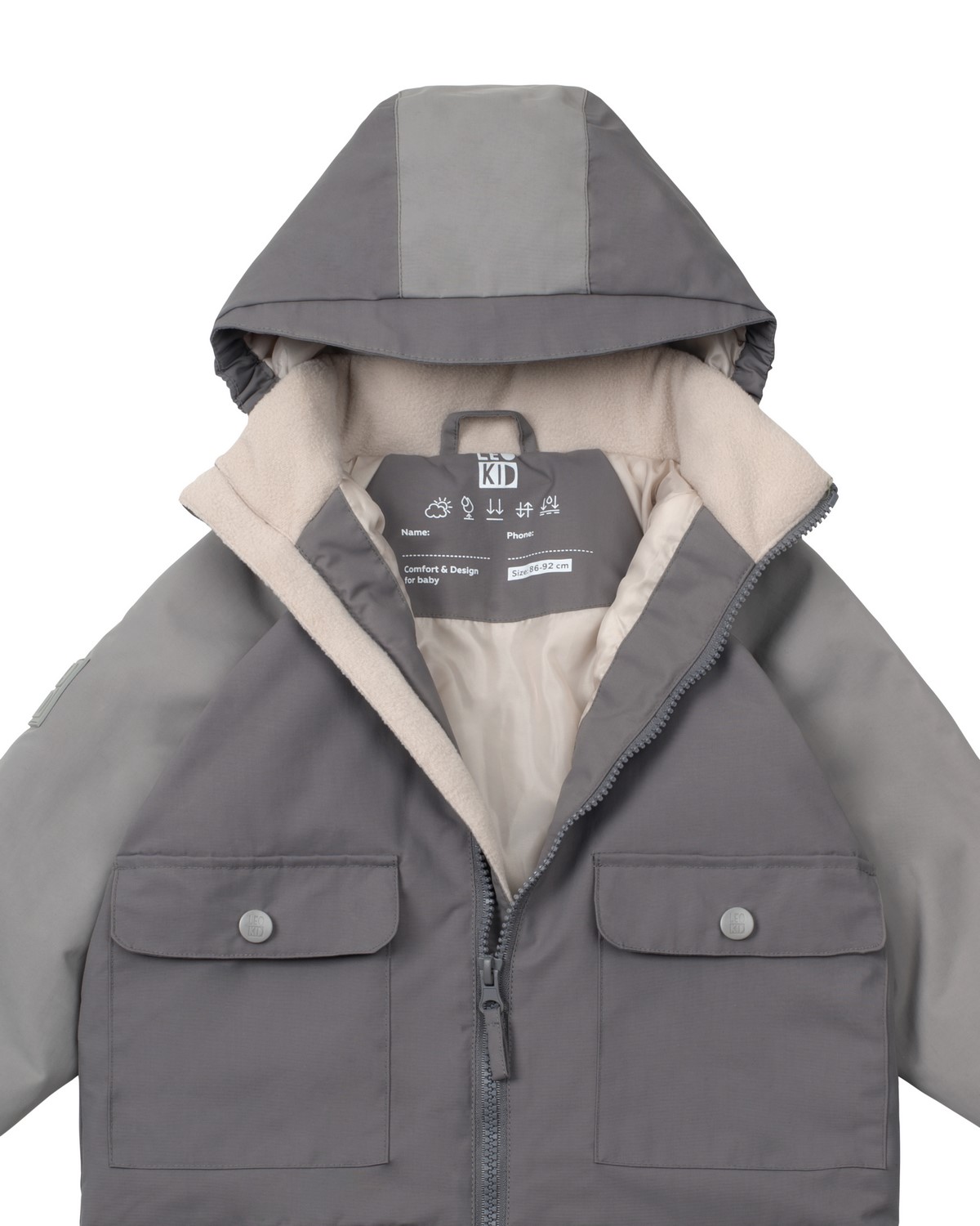 příslušenství: plastový zip s kovovým jezdcem, kovové knoflíky s plastovým kloboučkem
