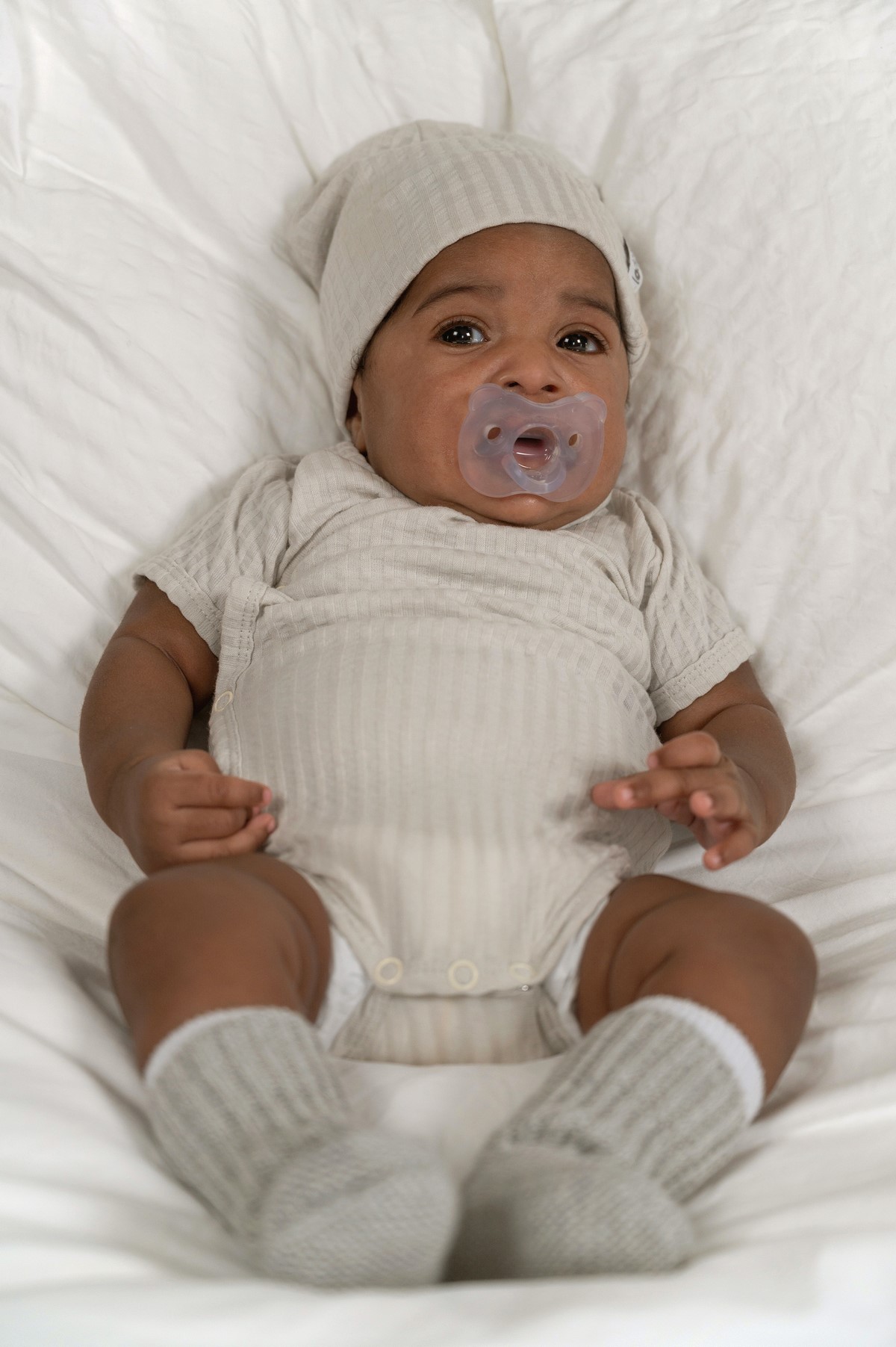 LODGER Beanie Seersucker Steel 6 - 12 měsíců - 49870_001