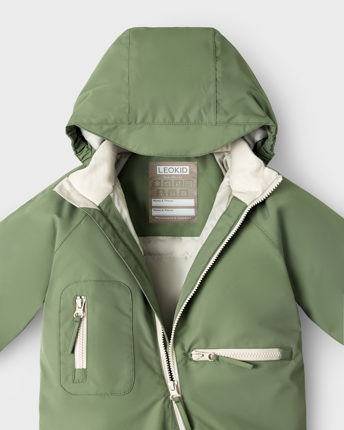 Materiál: vrchní část: 100% polyester, tepelně izolační výplň: 100% polyester, podšívka: 100% polyester Varování: Před použitím odstraňte všechny části obalu. Leokid GmbH. Kempten (Allgäu), Německo