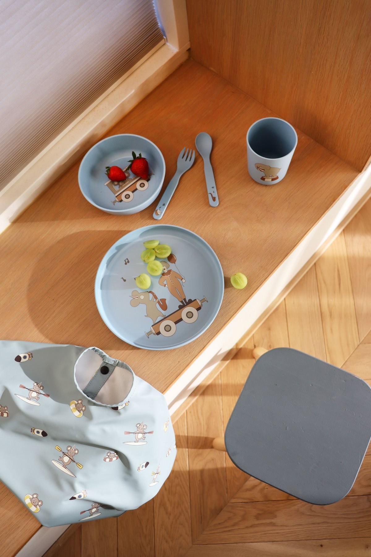 Upozornění: Produkt není hračka, nenechávejte dítě bez dozoru!! Před použitím odstraňte veškerý obalový materiál! Materiál: 68 % recyklovaný polyester, 32 % polyuretan Silně zbarvené potraviny mohou způsobovat skvrny. Chraňte před ohněm.