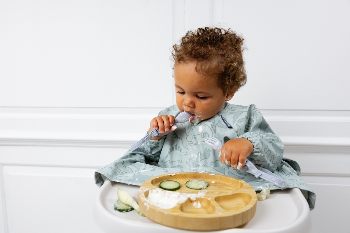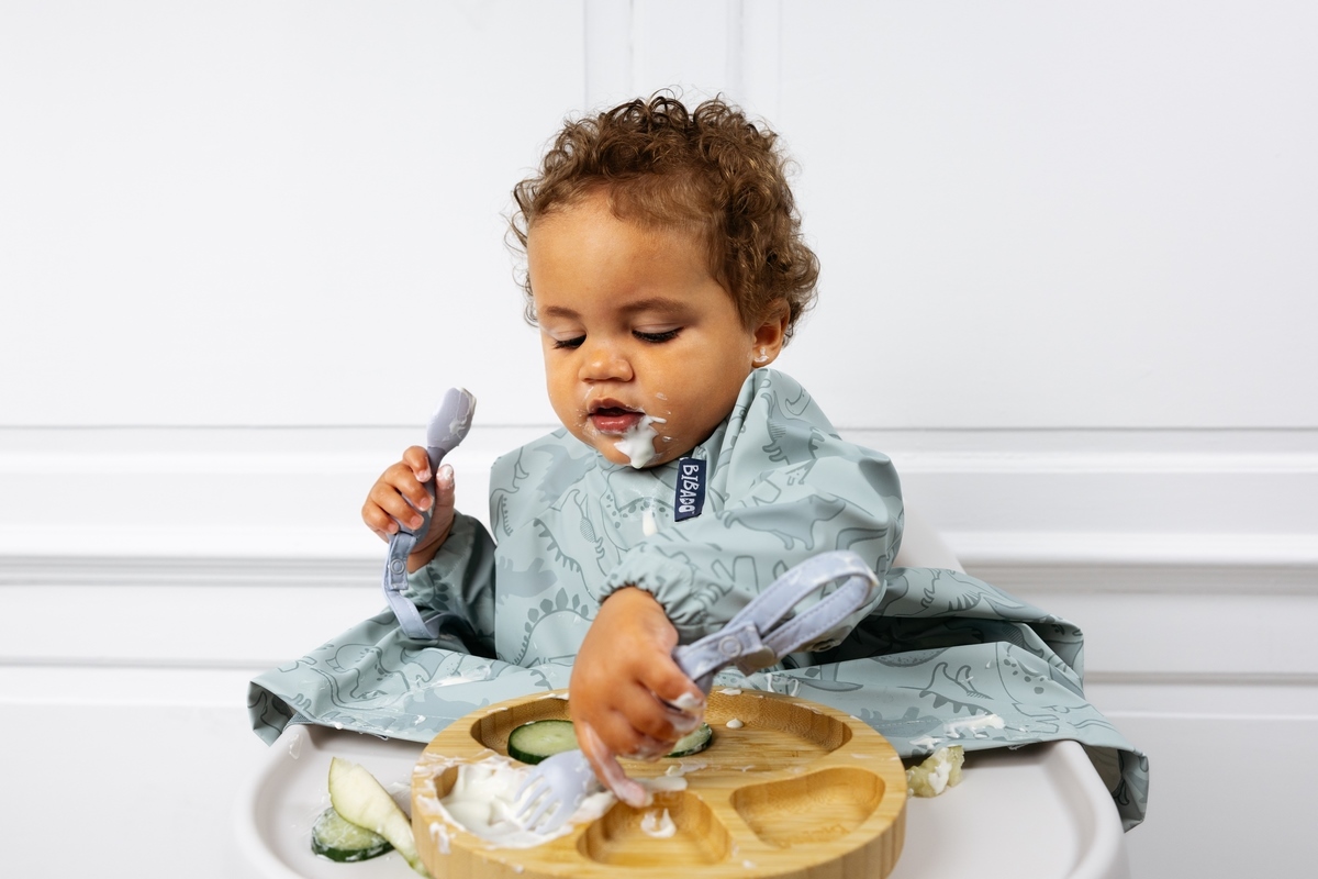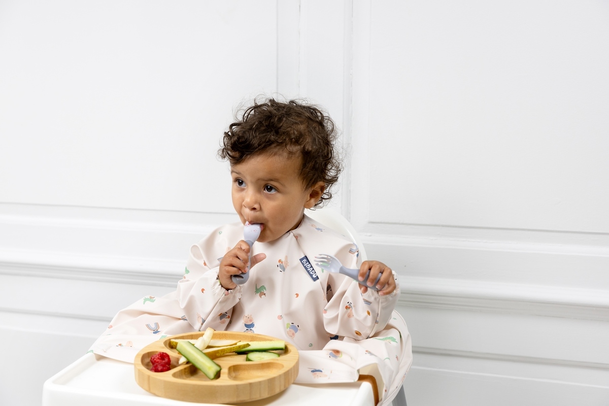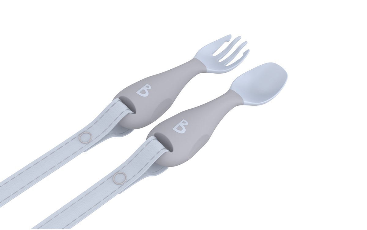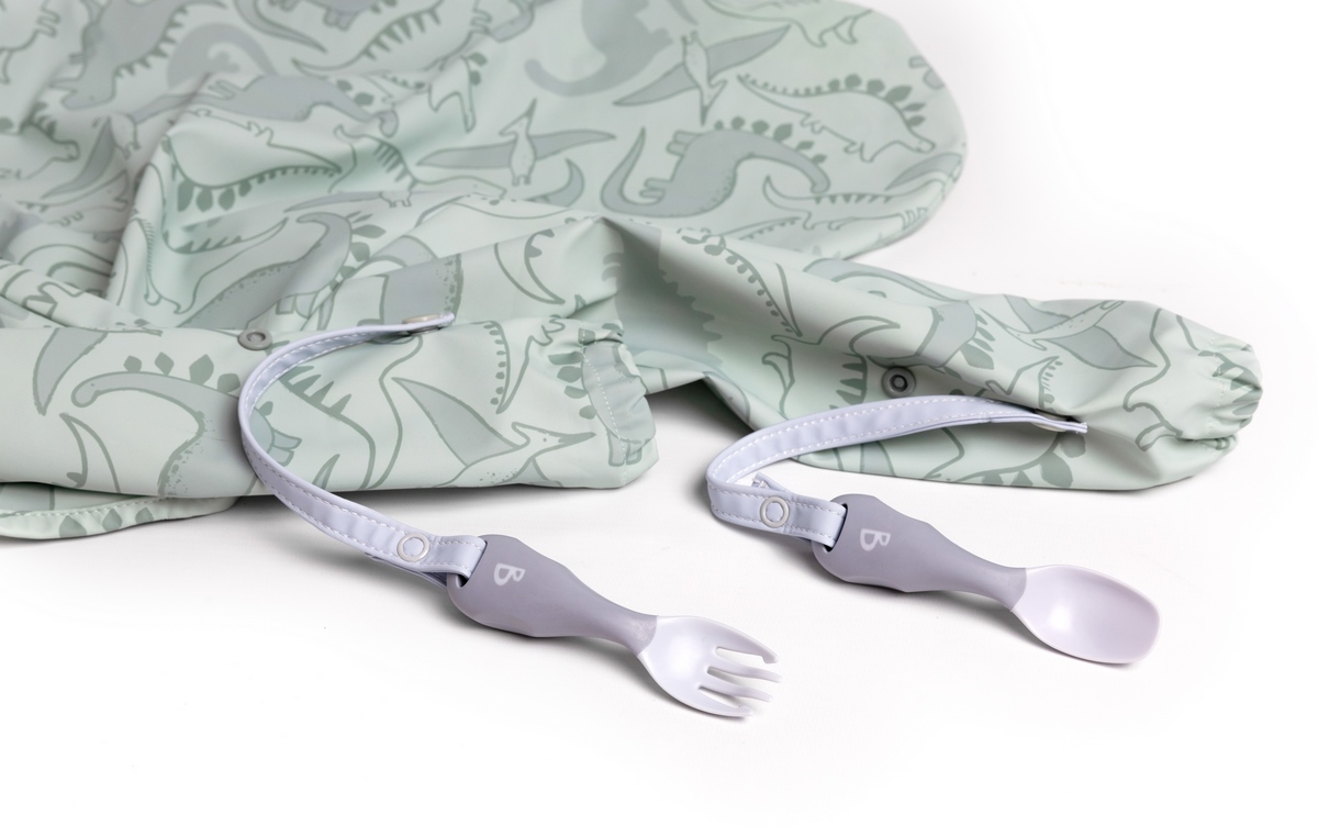 • jedinečný systém „no-drop“ - příbor se jednoduše připevní k bryndáku pomocí integrovaného pásku a patentků