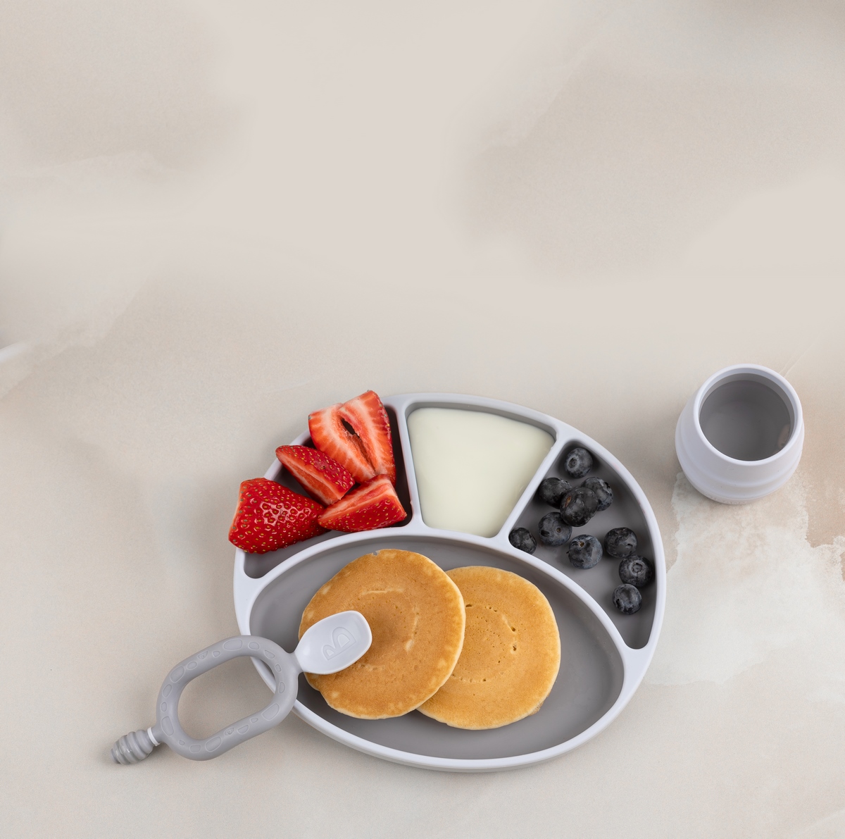 Materiál: 100% silikon, bez BPA Údržba: před použitím umyjte, lze mýt v myčce Nenechávejte dítě bez dozoru! Nepoužívejte produkty s ostrými hranami. Silně zbarvené potraviny nebo tekutiny mohou způsobovat skvrny.