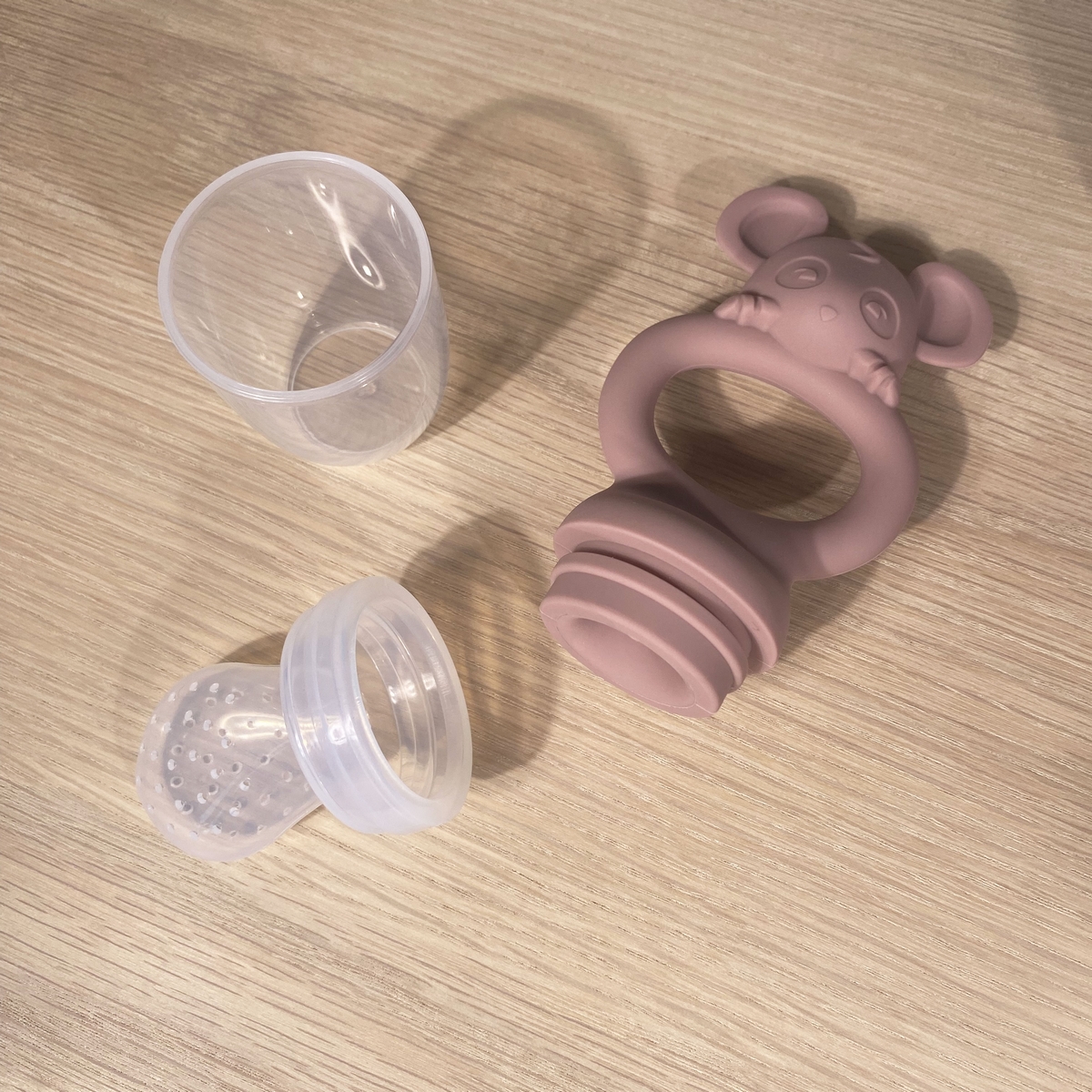 materiál: silikon, víčko: polypropylen. Před použitím opláchněte teplou mýdlovou vodou. Upozornění: nenechávejte dítě bez dozoru! Nepoužívejte ostré předměty. Vhodné pro děti od 4m.