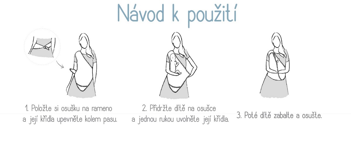 • snadné ovinutí kolem těla rodiče umožňující zvednutí mokrého miminka, které může být hned poté zavinuto